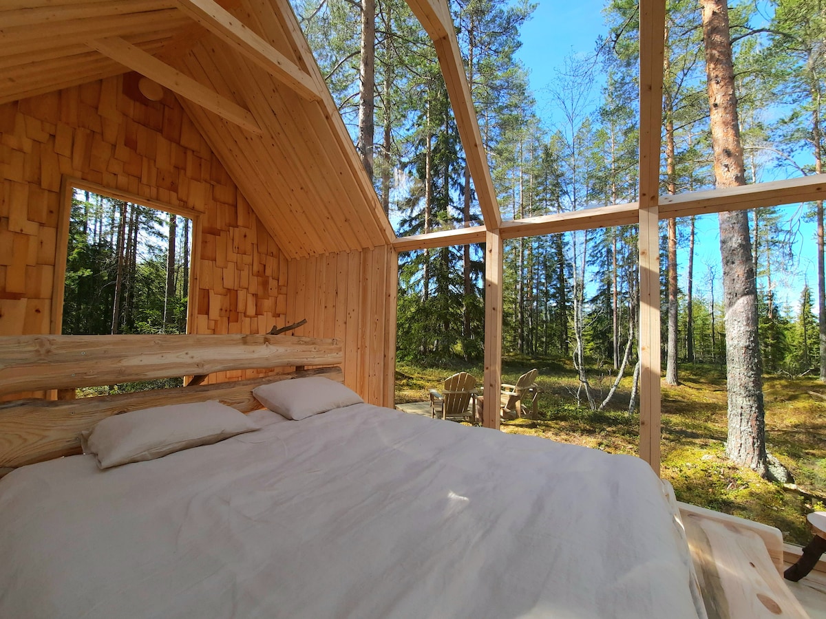 En ferge tar deg til hjemmene våre midt i en magisk skog på Vaajasalo Island, Kuopio. Hyttene er designet for å ha en nesten 360 utsikt, med et innovativt og moderne design, vil du sove under stjernene omgitt av trær, men i total komfort, nyte den rene naturen, allsidige aktiviteter og god mat . Respekt for naturen er til stede i alle våre fasiliteter og aktiviteter. Skil deg ut av hverdagen og dykk ned i en magisk verden.