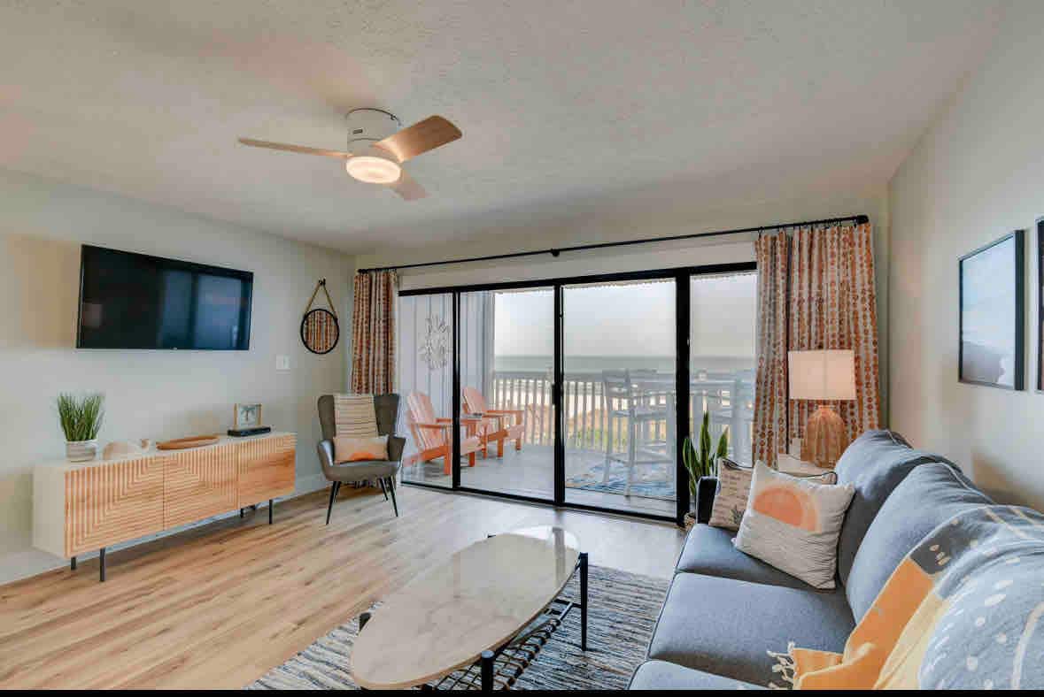 Vakker strandleilighet med tre soverom og spektakulær havutsikt. Dette er en enhet i enden, noe som betyr naturlig lys og den beste utsikten på øya. Den romslige terrassen tilbyr et sted å nyte nydelig havutsikt mens du nipper til morgenkaffen eller ettermiddagsdrikken. Eiendommen har fire utendørsbassenger, et innendørsbasseng, boblebad, tennisbaner, basketball, shuffleboard og et treningsrom. Kure Beach tilbyr aktiviteter for store og små.