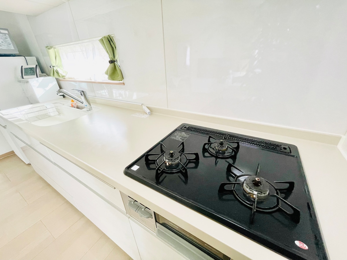 Helt selvforsynt i et tofamiliehjem. Hele den selvstendige 2LDK i første etasje er et helt hjem.To soverom.Den har plass til opptil fire gjester.Det er gratis parkering for to biler, og gjestene har enerett på hagen.Om vinteren kan du også kose deg med å leke i snøen. Nabolaget er et rolig boligområde. Fem minutters gange til den naturlige varme kilden og det oppvarmede bassenget.Det er også veier med trær langs elven og promenader omgitt av trær. Alle rommene har varmekabler i gulvet, slik at du kan holde deg varm 24 timer i døgnet. Alle rommene er også fullt utstyrt med klimaanlegg, slik at du kan nyte et kjølig og komfortabelt opphold om sommeren. Parkering er tilgjengelig ved siden av bygningen og foran inngangen.