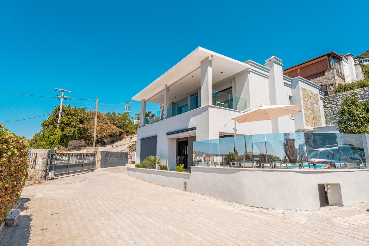 Villaen ligger i Bodrum/Yalikavak og har en moderne følelse sammen med luksuriøse fasiliteter. Ferieboligen ligger 20 minutter fra Yalikavak marina, og har fantastisk utsikt over havet og en fantastisk solnedgang. Alle fire soverommene har bukvinduer fra gulv til tak med utsikt over det asurblå vannet i Middelhavet. Det nybygde huset har: trådløst nettverk med høy hastighet (fiberoptisk), klimaanlegg overalt, Apple TV, en stor skjerm-TV, en Nespresso-maskin, fullt utstyrt kjøkken og Weber-grill.