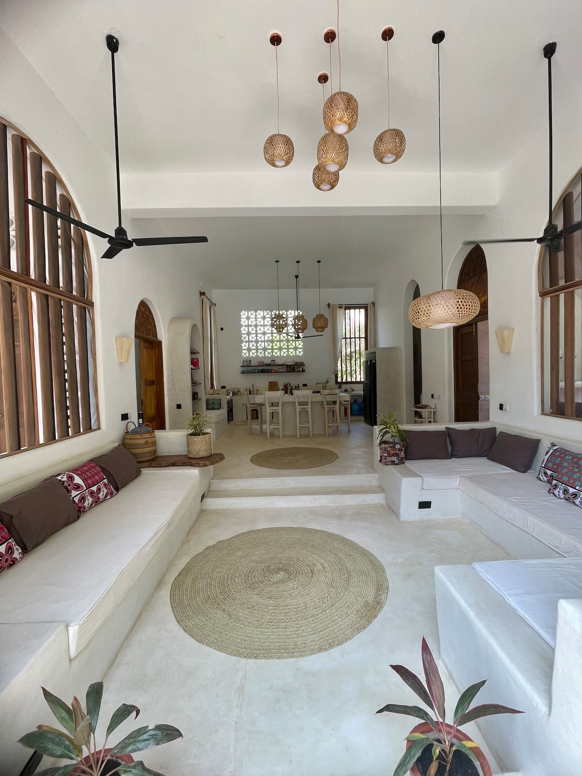 Den nydelige villaen vår ligger noen skritt fra stranden, i et privat og sikkert inngjerdet område, og har arkitektoniske detaljer i swahili-stil, delikat treverk, rolige buer og en feiende trapp med Kitengela-farget glass. Med fem storslåtte soverom med bad, swahilisenger, sjenerøse stuer og verandaer, en frodig moden hage med innfødte trær, hovedbasseng og babybasseng, og et lysthusområde med bar og grill, velkommen til din perfekte strandferie!