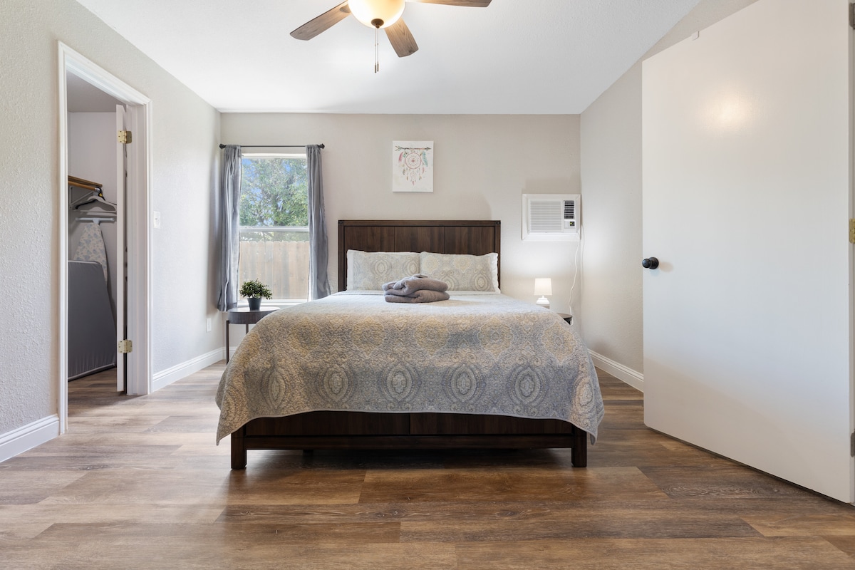 Slapp av i denne private, frittstående suiten med én seng, ett bad, egen inngang og parkering utenfor gaten. Gå til Texas State University eller nyt restauranter, barer og musikksteder i sentrum av San Marcos. Perfekt for et avslappende opphold for ferie, forretninger eller besøk med studenten din (du vet at de savner deg!). Fasilitetene inkluderer en superkomfortabel seng, elbillader (for både Tesla og andre elbiler), kaffemaskin, kjøleskap, mikrobølgeovn, skrivebordsplass, gratis vaskemaskin/tørketrommel og trådløst nettverk.