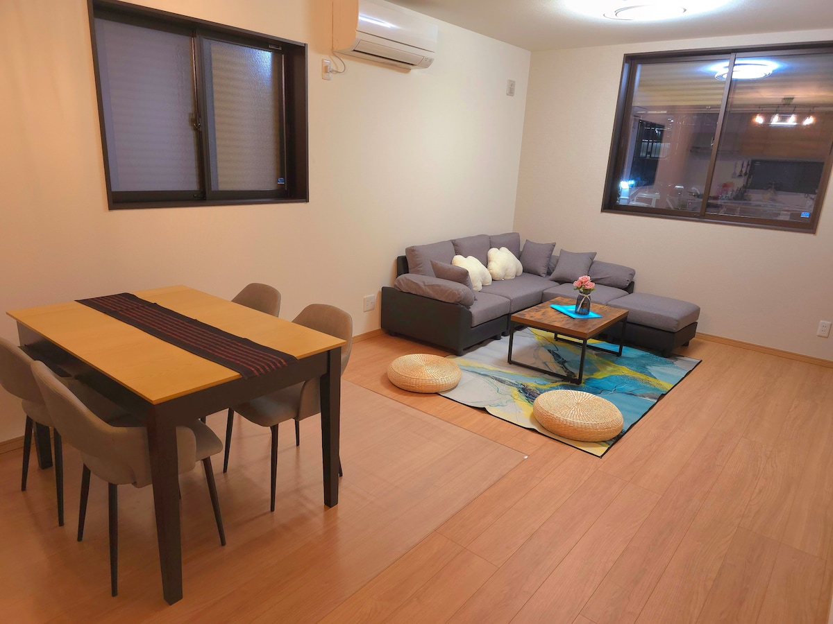Dette er et helt frittstående hus 10 minutter til fots fra JR Omi-Maiko stasjon, og 8 minutter til fots til nærmeste strand ved Biwa-sjøen. Du kan se innsjøen Biwa fra bygningen. I tillegg er kjæledyr hjertelig velkommen! Du kan nyte det lokale livet uten å måtte bekymre deg for ting som gjestgiverier, hoteller eller gruppesover. Fiberinternett, Wi-Fi tilgjengelig i hele bygningen, lekerom, skrivebord og stor TV med både kabel-TV og on-demand-TV. Nyt livet ved Biwako-sjøen med dine kjære og kjæledyr, enten det er for noen få netter eller lengre opphold. 1. etasje er laget av massivt tre og vedlikeholdes kun med matolje, noe som gjør det trygt for både mennesker og kjæledyr. Som en infeksjons- og hygienetiltak, alle rom! Det er utstyrt med en ventilasjonsvifte (Lossnay) og et plasmaklynge klimaanlegg som kan ventileres utendørs, mange vifter og sirkulatorer, fra luftrensere til ozonsterilisatorer, og til og med en støvsuger på hver etasje.
