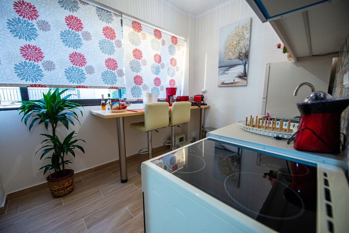 Nylig, totalrenovert leilighet i første etasje i hjertet av Kalamata, i umiddelbar nærhet til Central Square og International Dance Center. Den har to soverom og fullt utstyrt kjøkken. Moderne, godt møblert og fullt funksjonell. Huset har en egen inngang og en liten vakker gårdsplass. Den er egnet for par, barnefamilier, profesjonelle eller alle andre som ønsker avslapning og ro.