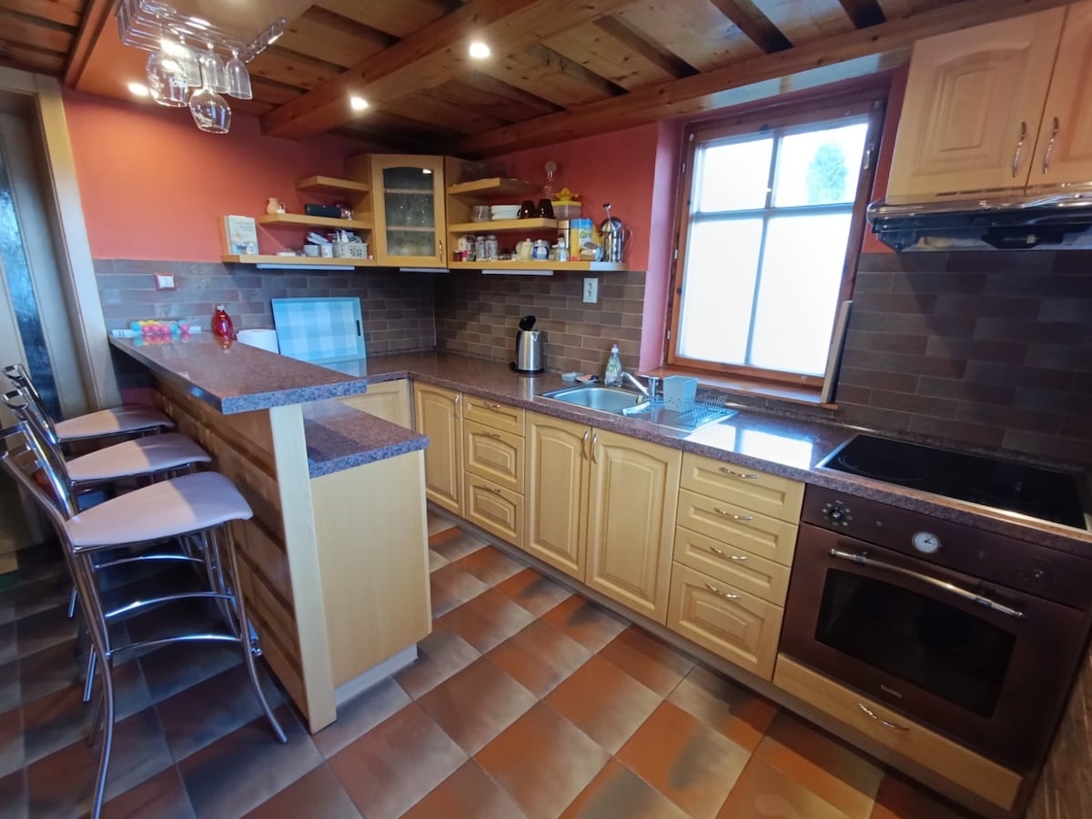 Slapp av på dette unike og fredelige stedet. Familiehuset gir luksus, fred og vakker utsikt over den omkringliggende naturen. Ideell for å slappe av med familien, men den kan også håndtere en liten feiring. I nærheten ligger skiheisene Veľké Ostré, Horný Vadičov og turistområdet Ľadonhora. Et flott sted for fotturer og utforskning av Kysúcs skjønnhet. Unn deg privatliv og luksus.