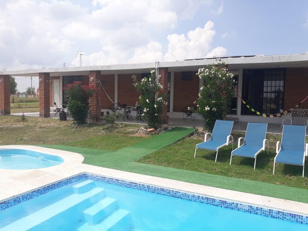 Helt landsted med svømmebasseng 25 min fra León Gto MED ALLE SANITÆRE TILTAK! Møt og TA DEG AV DEM DU ELSKER MEST PÅ ET MAGISK STED med døgnåpen sikkerhet, nyt ren luft og kom i kontakt med naturen. Vi har romslige terrasser, svømmebasseng og chapoteadero, grill, leker for barn og fotballbane. Huset har et fullt utstyrt kjøkken, fem soverom, en stue, en spisestue og tre komplette bad. Rikelig med parkering inne på eiendommen.