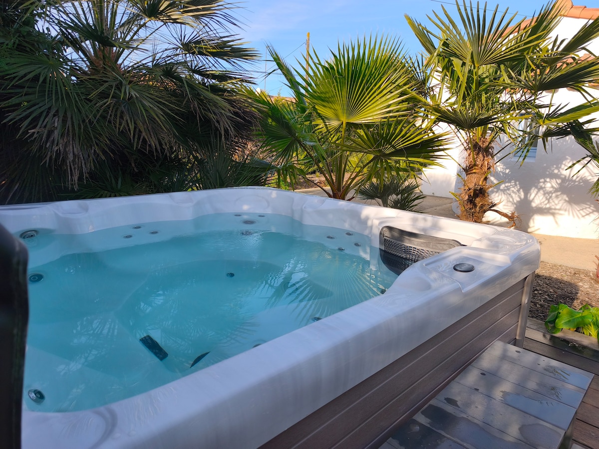Vi tilbyr en lys villa i ett plan med boblebad (Sdb) og solrik hage. Strendene, den ville kysten, supermarkedet, havnen med butikker og restauranter ligger innenfor 5 til 10 minutters gange. Terasen er utstyrt med solsenger, parasoll, et teakbord. Hagen med frukttrær er helt lukket og uten innsyn. Plaskingen av vannet i dammen med gullfisk bidrar til roen i hagen. Sengene er redt ved ankomst.