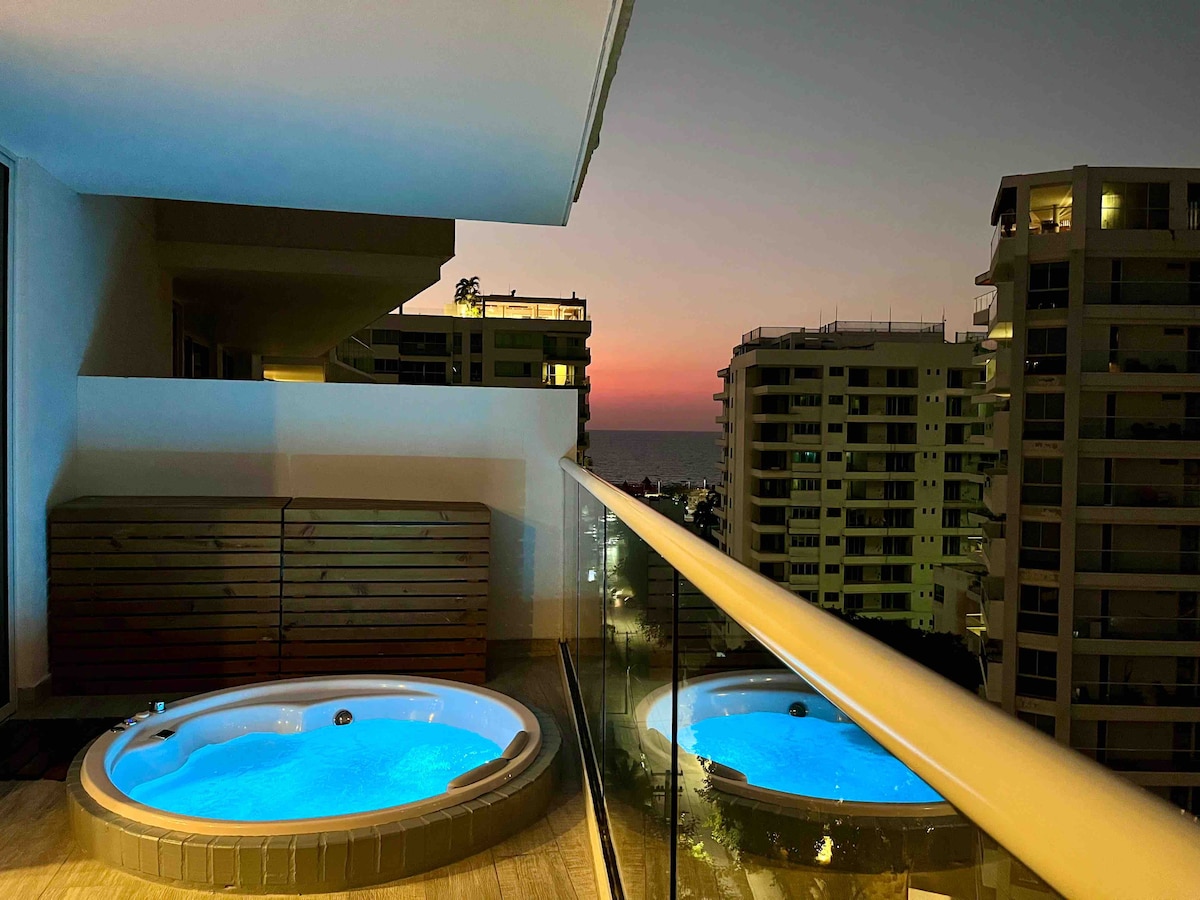 Den elegante leiligheten vår ligger i en av de mest komplette og moderne bygningene i den eksklusive «Cielo Mar»-sektoren. Du er bare noen få meter fra «Playa Azul», en av byens beste strender, ti minutter fra det historiske senteret og bare fem minutter fra flyplassen. Leiligheten har ekstraordinær utsikt over bukten og havet, som du kan nyte fra den private jacuzzien på balkongen. Du kan også nyte de utrolige evighetsbassengene på taket, komplett med jacuzzi, sauna, terrassebar og grill.