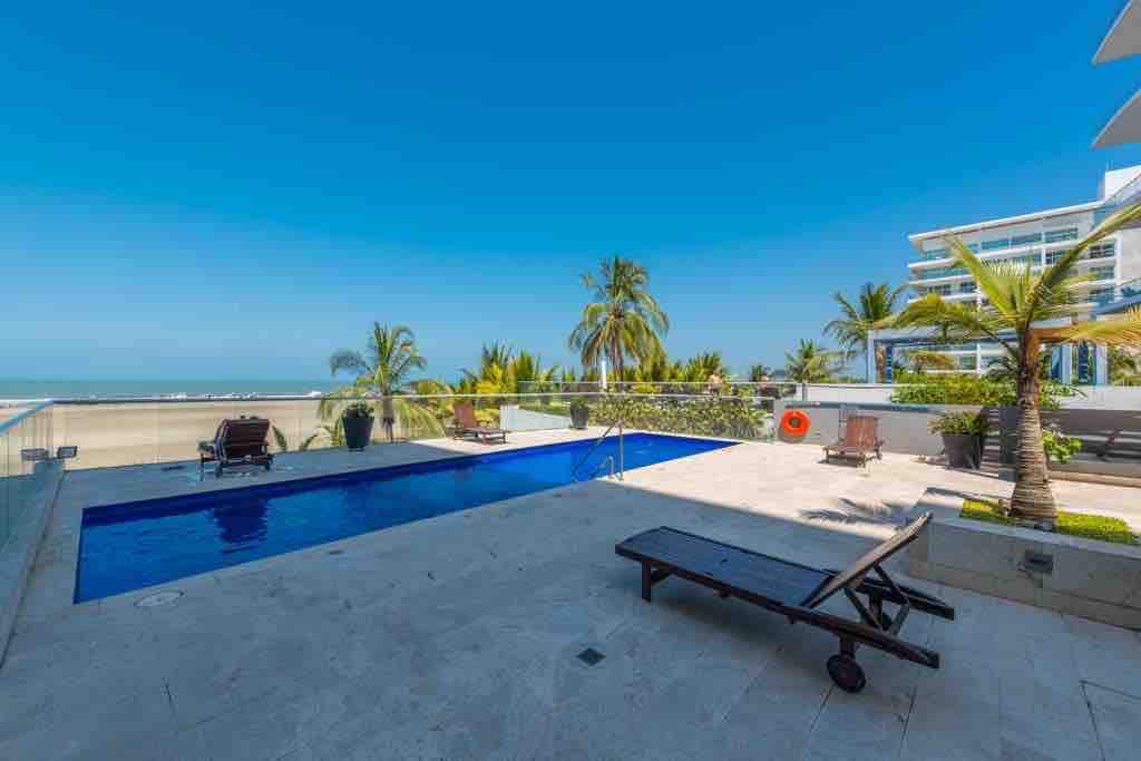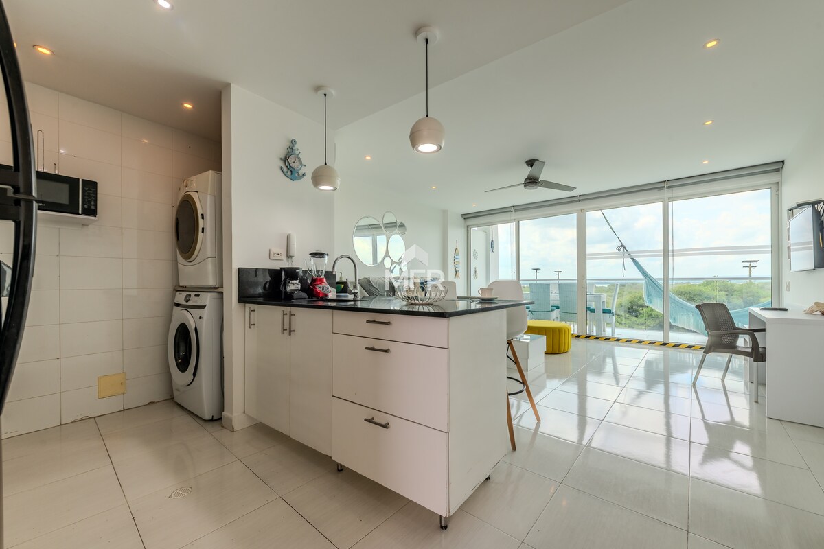 Nyrenovert leilighet med unik utsikt over havet og bassengområdet, klimaanlegg i alle rom, høyhastighets internett i fiberoptikk, ligger 5 minutter fra flyplassen, 10 minutter med taxi fra den inngjerdede byen, og med direkte tilgang til de beste strendene i Cartagena. Det er et treningsstudio i fellesområdene. Ligger i det nordlige området (Morros) med hoteller som Holiday Inn, Radisson, Sonesta, Las Americas