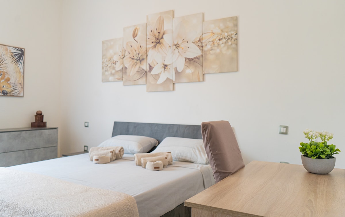 To-roms leilighet i første etasje som består av: en stue med en stor og komfortabel sovesofa, et kjøkkenkrok, et soverom med dobbeltseng, et bad med dusj og en vaskemaskin. I tillegg er det en romslig, møblert, delvis overdekket utendørs veranda, hvor du kan spise og slappe av. Med denne overnattingen i sentrum er gjestene veldig nær stranden, kveldsstrandpromenaden, marinaen og alle tjenestene i byen. Perfekt for par og barnefamilier. Iun: Q2855