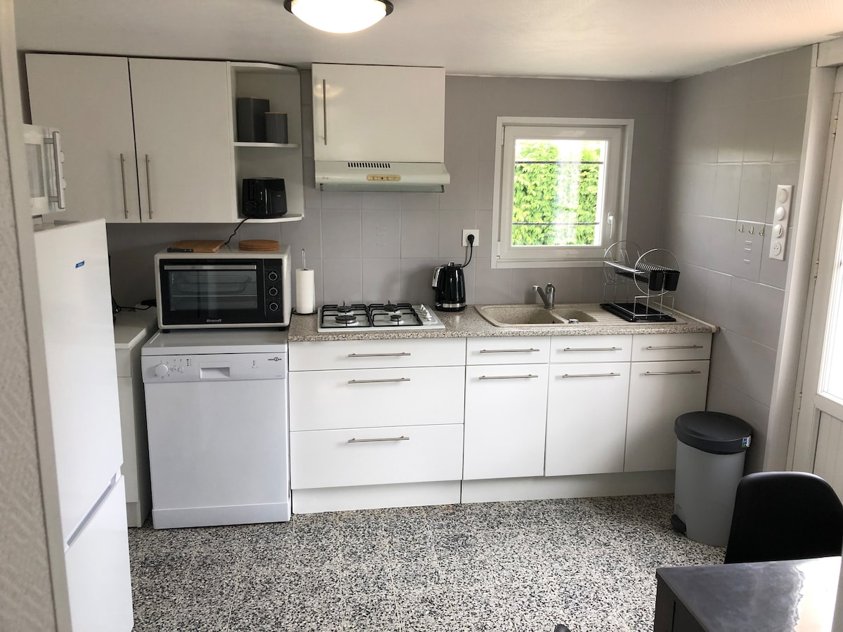 Består av 2 soverom med dobbeltsenger, et bad, en stue, spisestue og et fullt utstyrt kjøkken, på en lukket tomt vendt sørover på 1500m2, vår hytte ønsker deg velkommen for å være så nær naturen som mulig i den rolige normanniske landsbygda. Vår hytte ligger i en liten landsby nær L'Aigle, 1t15 fra strendene i Normandie og 1t30 fra Paris. L'Aigle betjenes av jernbanelinjen Paris/Granville. Mange steder er verdt å besøke i området.