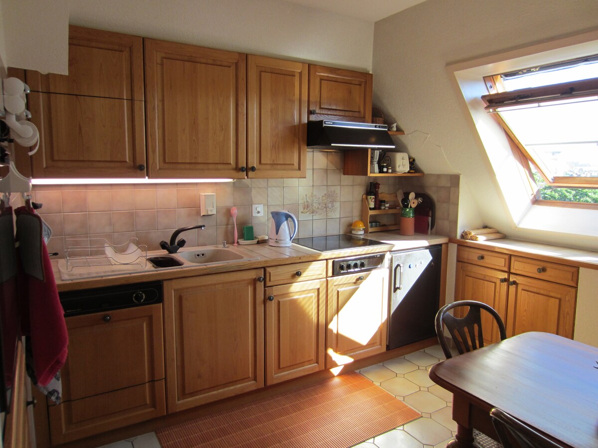 Nyt et elegant hjem, som ligger i sentrum av urmetropolen. Smakfullt møblert (moderne design), dette hyggelige stedet har plass til 2 til 3 personer. Den har alt utstyr for et behagelig opphold. Denne duplex-leiligheten ligger i nærheten av markedsplassen, restauranter og butikker. Fra jernbanestasjonen kan du enkelt nås til fots på 8 minutter. Parkering mot betaling er tilgjengelig 2 minutter fra boligen.