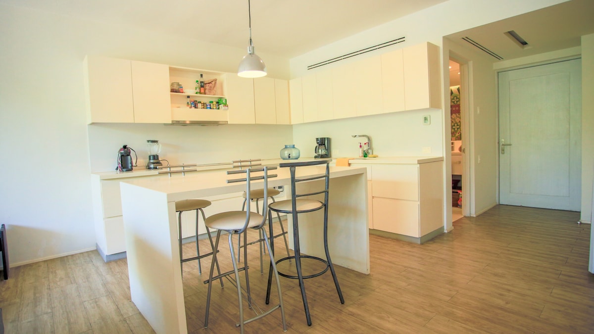 Kom og slapp av i denne store og velutstyrte leiligheten med tre soverom. Slapp av i de romslige uteområdene, spis inne med det fullt utstyrte kjøkkenet vårt. Store og koselige senger med sengetøy med åtte sengeplasser til åtte av dine nærmeste venner og familie. Ta en spasertur eller kjør ned med eieren din medfølgende Golfbil til det episke evighetsbassenget på halvøya her på Cosmo Property. Bare fem minutters spasertur til Arrocito-stranden.