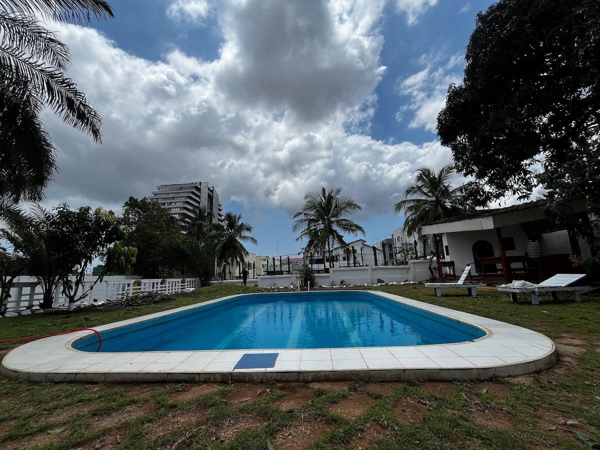 Føl deg som hjemme i dette fredelige to-roms tilfluktsstedet i Embassy Gardens, Cantonments. Gjester elsker det plettfrie stedet, pålitelig trådløst nettverk med høy hastighet pluss bærbar MiFi og stressfri nøkkelfri adkomst. Nyt rolige morgener på balkongen med utsikt over bassenget, et fullt utstyrt kjøkken, en komfortabel kingsize-seng og kraftig klimaanlegg. Trygt, rolig og sentralt – mange gjester sier at de ikke hadde lyst til å dra, og bestiller alltid på nytt. Bestill nå eller legg til i ønskelisten din.