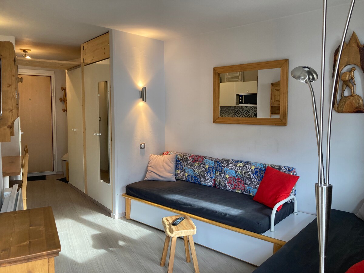 Velkommen til vår varme leilighet på 28 kvm i La Daille, med bakkene ved foten av døren din. Forfulgt fra skiene dine så snart du går ut, fordyp deg i eventyret. Nyt det koselige redet vårt utstyrt med køyeseng, bad, kjøkken og komfortabel sovesofa. Beundre heisene fra vinduet ditt, komfortsikkert med puter, håndklær og sengetøy. Betalt parkering om vinteren, gratis om sommeren. Trådløst nettverk inkludert. Tilgang til svømmebasseng i juli og august. Din flukt starter her!