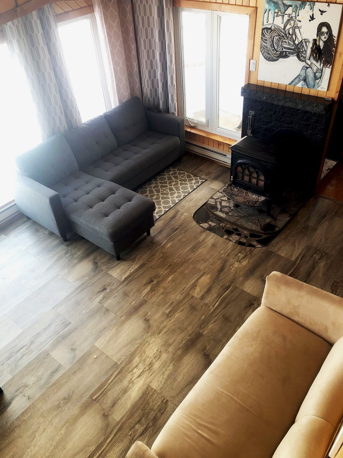 Du har tilgang til de 5 km stiene i vedfyrte tomten vår, samt 2 km fra Iroquois-elven som krysser tomten vår. Vi vil være på stedet for å ønske deg velkommen. Gjester kan bruke vaskemaskinen og tørketrommelen vår hvis det er nødvendig. Vann, dusj, gasskomfyr og elektrisk kjøleskap, queen-seng. Sengen ligger på mesaninen. Merk: I vintersesongen er det ikke innlagt vann. Jeg har kjøpt rent vann til toalett, dusj og drikkevann. Passer for to personer.