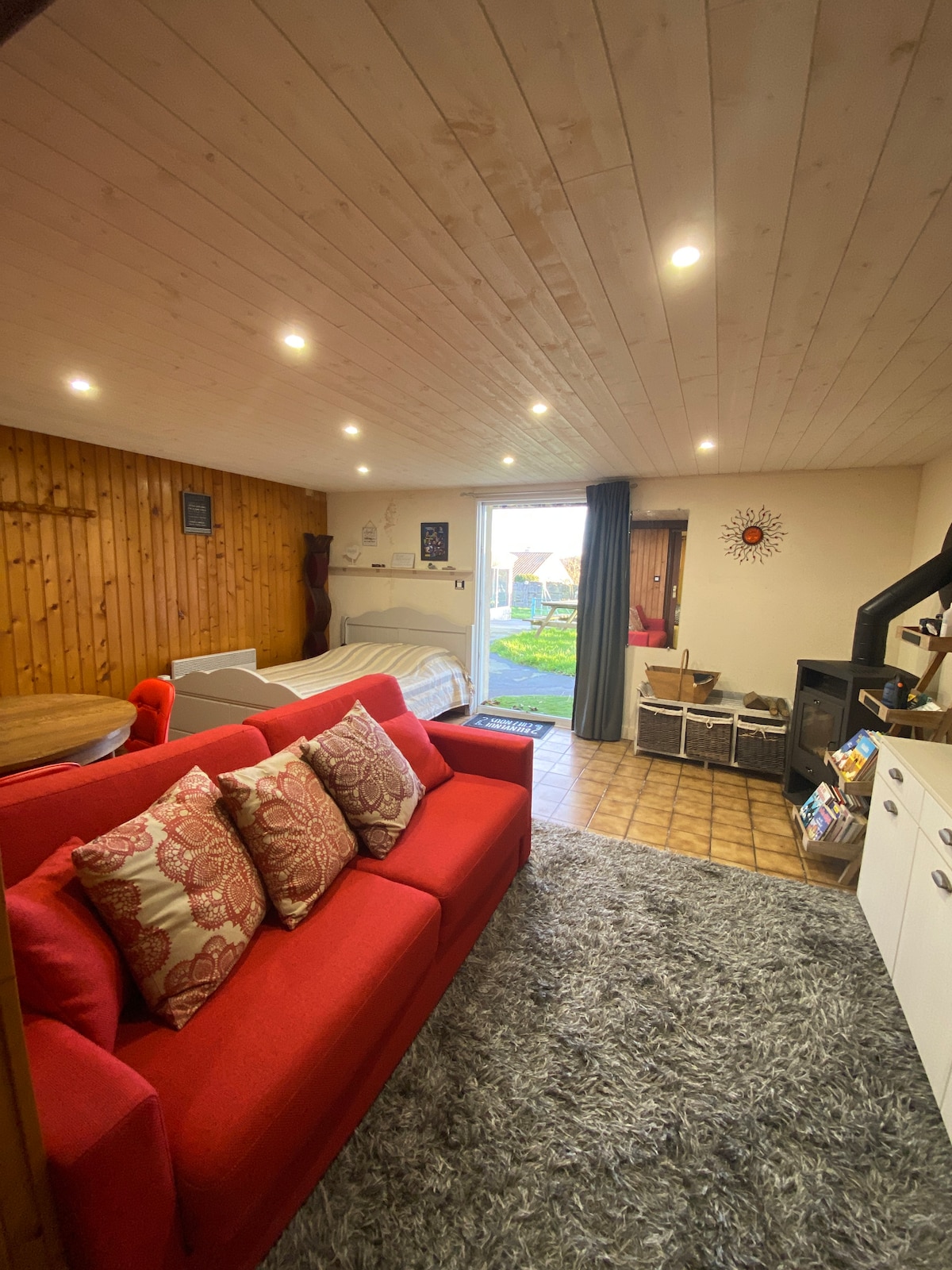 Overnattingsstedet ligger i sokkeletasjen i huset vårt. Svært stille, egen inngang bak huset. Nøkkelboks. To plasser: – én stue med én dobbeltseng + en sofa foran TV-en – ett spiseområde og et sanitærområde (dusj + separat toalett) + Bord inne og ute. Servise, mikrobølgeovn, klassisk kaffemaskin med filtre tilgjengelig, lite kjøleskap, dusj osv. – Gratis parkering.