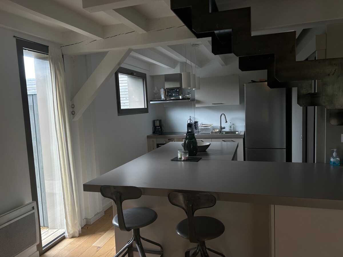 Leiligheten ble totalrenovert i år. Ved havet, med privat tilgang. Toetasjes leilighet tilknyttet huset vårt, designet for å være et ekte feriested. Privat badestamp Terasse Stille, men i nærheten av alt Passer for par, rolige vennegjenger eller hyggelige familier Ikke egnet for fester Terrasse, parkering, utedusj. En fullt utstyrt, enkel og komfortabel stue. «Cabane»-mesanin 1 hovedsoverom 1 lite soverom Walk-in-garderobe @lannexeocean For å oppdage stedet gjennom årstidene