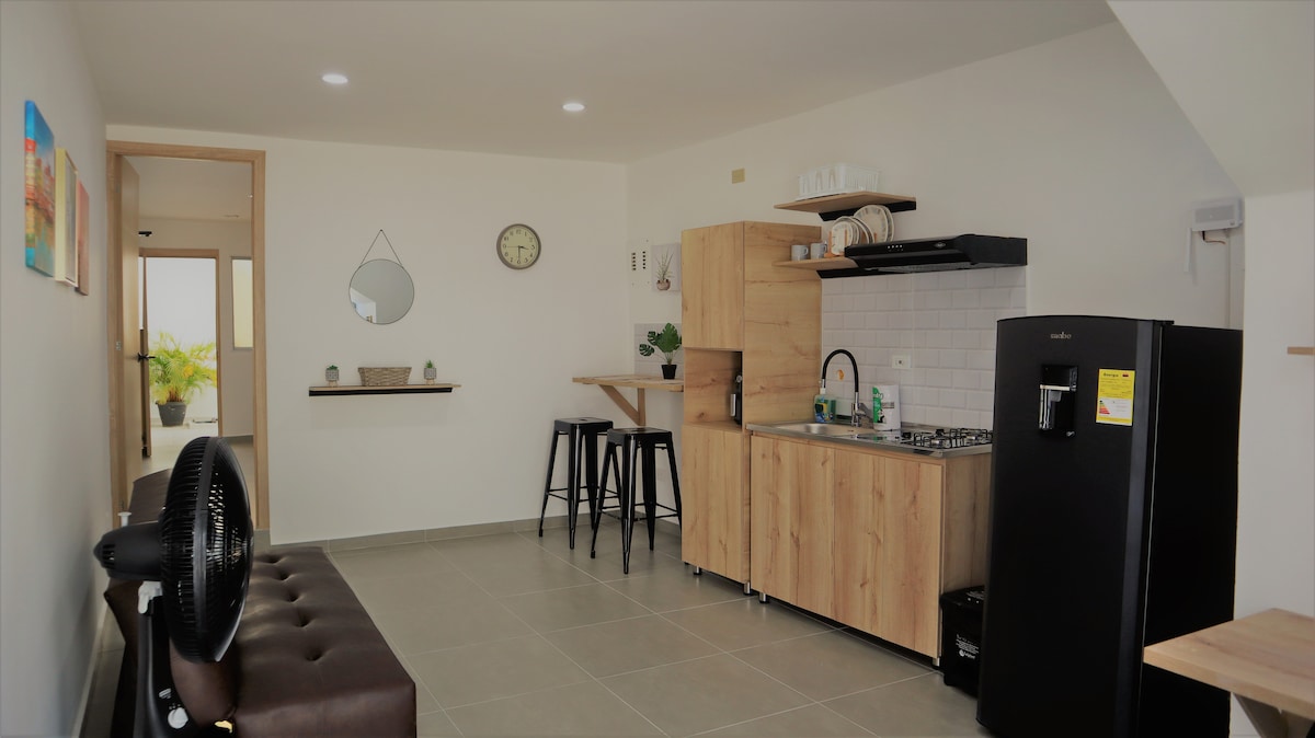 Våkn opp i La Guajira. Dette romslige, lyse stedet er perfekt for par, familier og profesjonelle som ønsker komfort og kontakt, og har aircondition og raskt trådløst nettverk for å nyte den karibiske energien. Enten det er for en virtuell gjenforening, en romantisk frokost eller en avslappende ettermiddag, flyter alt fritt her. Trinn fra esplanaden, restauranter og kulturelle områder, vil du føle deg som en del av det autentiske Guajira-livet. Innsjekking uten vert døgnet rundt og garantert støtte