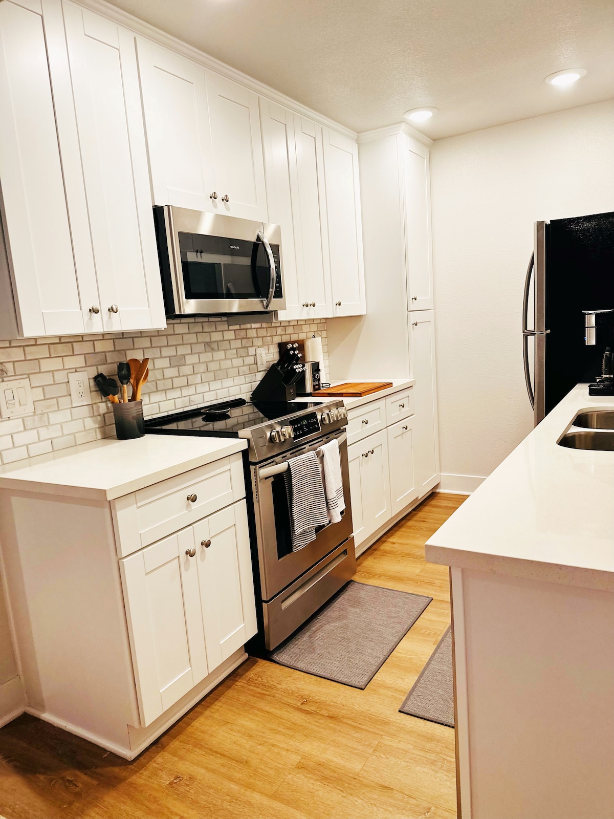 Fint oppdatert byhjem har alt! Det er en romslig 1382 kvm, 2BR og 2,5BA. Stedet er stille, komfortabelt og rent. Egen tilgang til stranden er din. Ta en kort 1/2 kvart spasertur til sanden, veddeløpsbanen eller Cedros Ave. Kort vei til butikker, musikksteder, bryggerier, topprangerte restauranter, utleie av sykkel-/surfebrett, Amtrak med mer. Ligger på østsiden av Sierra Ave. ca. 200 meter/ 2 minutters spasertur til havet. Condo har IKKE havutsikt, men lokalsamfunnet tilbyr havutsikt og tilgang.