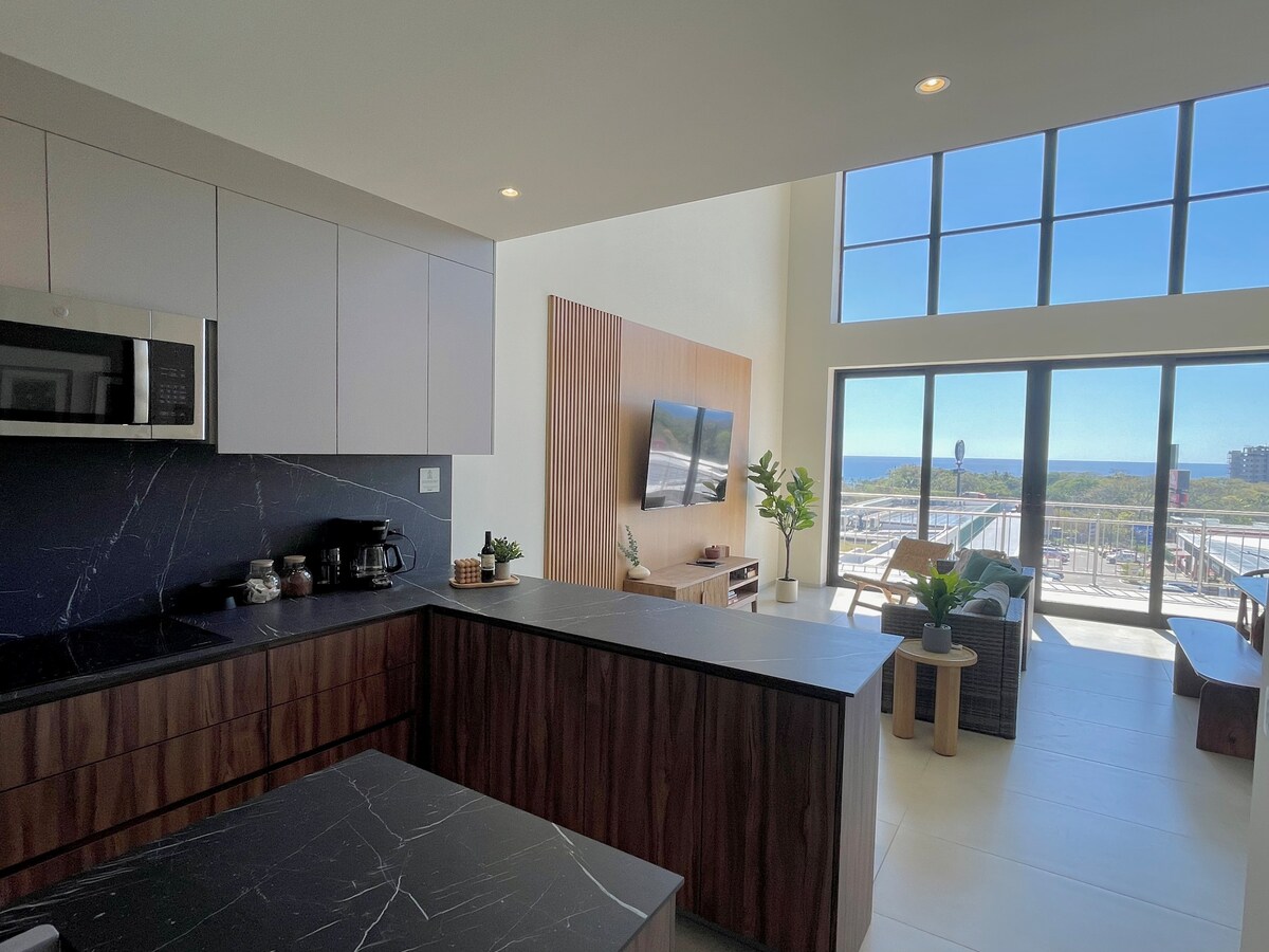 Tenk deg å våkne opp til en kystopplevelse rett foran deg, en perfekt kontrast mellom himmelen, fjellene og havet. Nyt et avslappende opphold på det koselige loftsleiligheten vår. Dette moderne og komfortable stedet er utformet for å gi deg en hyggelig opplevelse bare minutter fra stranden. Loftsleiligheten har et utstyrt kjøkken og en balkong med vakker utsikt. Det ligger i nærheten av de beste restaurantene, kjøpesentrene og bare fire minutter fra Surf City. Det er det perfekte stedet for en avslappende ferie!