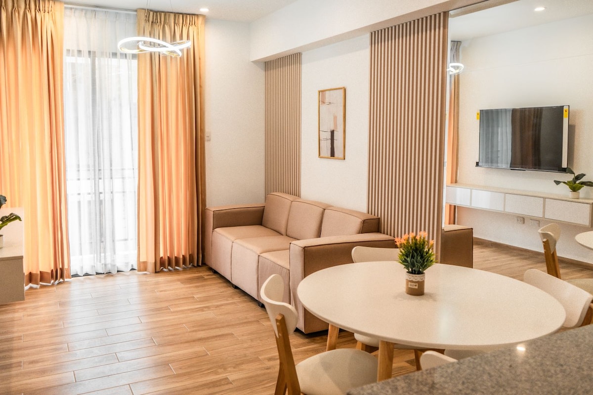 Nyt en førsteklasses opplevelse i denne moderne, fullt utstyrte leiligheten. ✨ Vi tilbyr: • queensize-seng • 55" TV i stuen og 43" TV på soverommene. • Privat balkong med panoramautsikt over byen. • fullt utstyrt åpent kjøkken • Varm LED-belysning og moderne designerinnredning. • fellesområder med kontorfellesskap, terrasse og utendørs treningssenter 🌟 Ideell for: Par, forretningsreisende, digitale nomader eller turister som verdsetter design, renhold og den totale opplevelsen.