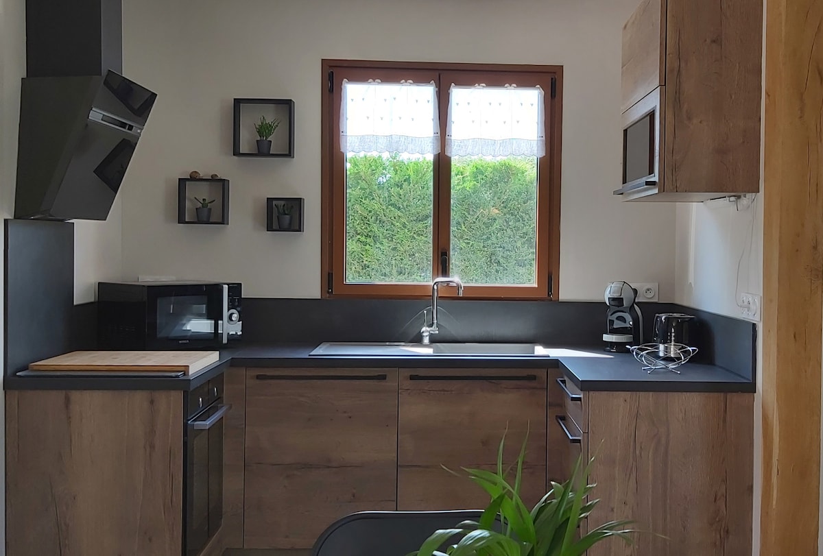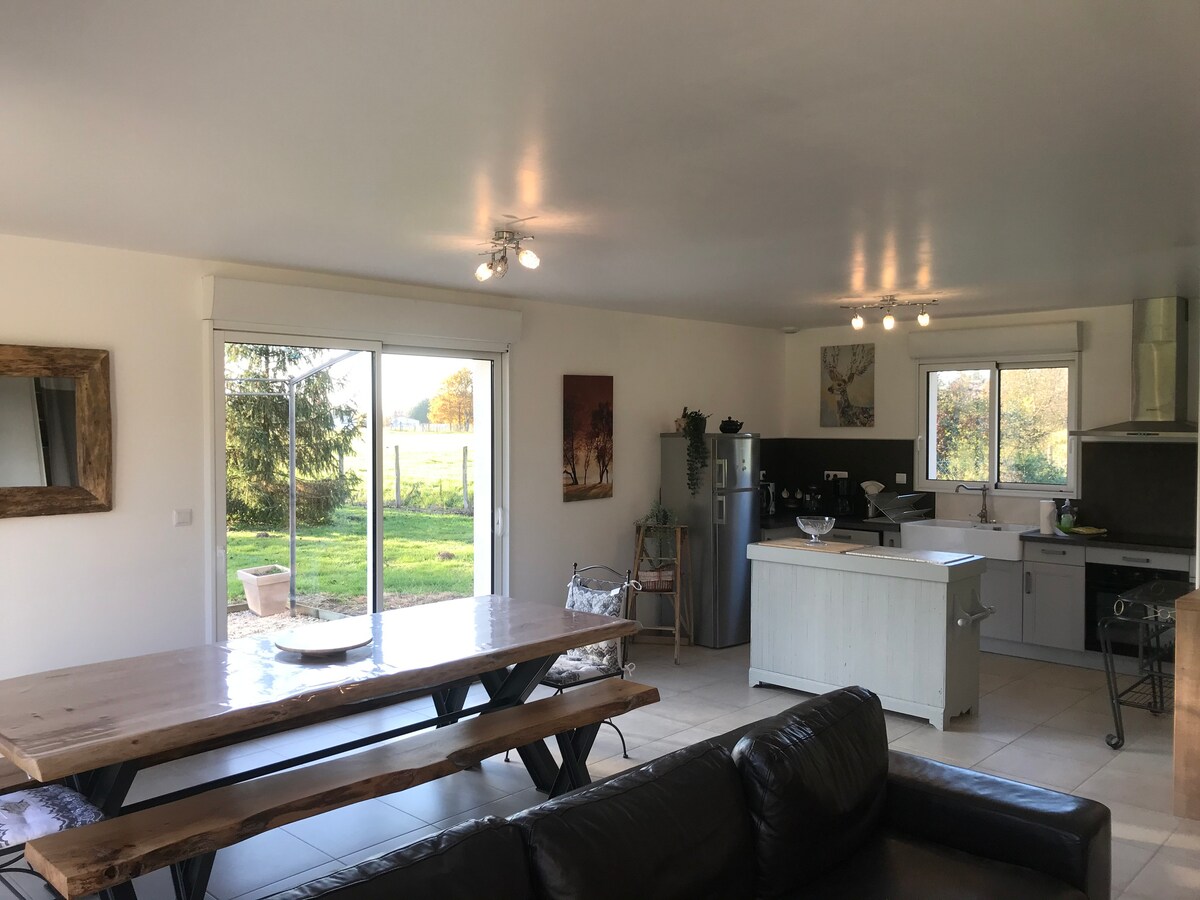 På bredden av den to hektar store dammen er l 'Angélus rett og slett et uvanlig, tidløst sted dedikert til elskere... En atypisk oase av fred som ligger i skogen, en øy med en fullt utstyrt strand for å spise i solen til veldig sene sommerkvelder, et koselig hus med en stor peis og 139 cm smart-TV. Boks 4G, DVD, ultrarask nett, klimaanlegg, terrasse foran dammen med stort bord, grill, stor pontong og robåt. Imponerende stillhet, natur, dyreliv og evighetsbad.