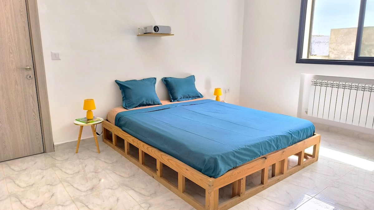 Elegant opphold i La Marsa – ideelt for familier, jobb og ferie. Velkommen til hageleiligheten vår i La Marsa, som blander tunisisk sjarm med britisk moderne luksus. ✨Førsteklasses beliggenhet – bare fem minutter fra stranden, i nærheten av alle de beste restaurantene, barene, kafeene og butikkene. Det er romslig, familievennlig og ideelt for jobbreiser, opphold eller feiringer. Nyt en privat hage med grill, i nærheten av restauranter, barer og supermarkeder. En kort kjøretur til Sidi Bou & Carthage, det perfekte stedet å slappe av eller utforske