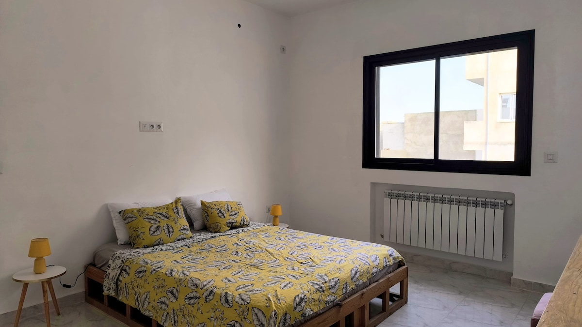 Dette er et veldig hyggelig sted for oppholdet ditt. Koselig, rikelig møblert leilighet som ligger i Ain Zaghouan Nord. Du finner restauranter, kafeer, supermarkeder, klinikker, ambassader i nærheten. 10 minutter fra Tunis-Carthage internasjonale flyplass. 15 minutter fra sentrum av Tunis. 5 minutter fra forretningsdistriktet Lac. 10 minutter fra Marsa og Sidi Bou Saïd Leiligheten ligger i 2. etasje i en bygning utstyrt med heis og undergrunnsparkeringsplass, en balkong med klar utsikt.