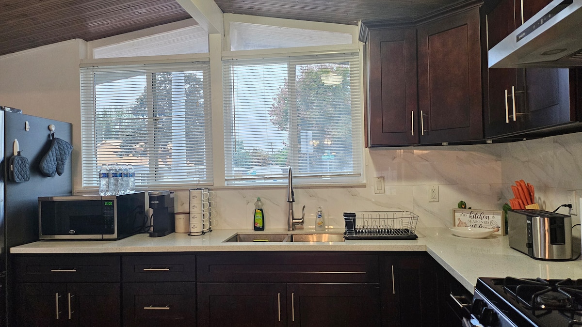 Ny studioleilighet i et rolig nabolag, sentralt plassert. Parkering i oppkjørselen. Privat portinngang med sementert gangvei og privat terrasse med bord og stoler, med grill. Stabelbar vaskemaskin og tørketrommel. 2 tons mini split AC og varmeapparat. 55" TV montert med full svingkapasitet og 1 Gig internett. Sofaen har en uttrekkbar seng i queen-størrelse. Kjøkkenet har vask, elektrisk komfyr og mikrobølgeovn. Badet har dusj, toalett og vask. Komfortabel queen-size dobbel overmadrass.