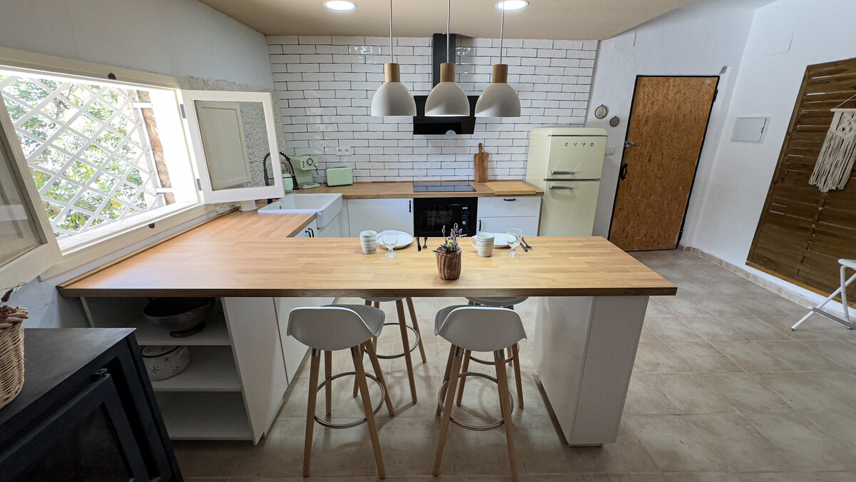 Varm og koselig innkvartering i naturparken Desierto de las Palmas i Benicàssim, ideelt for å tilbringe noen dager på stranden og i fjellet, både som familie og som par. Fra huset vårt kan du ta turer for de som elsker fotturer, samt sykkelturer. Bare 15 minutter med bil fra stranden og musikkfestivaler. Nyt de fire årstidene på dette enestående stedet midt i naturen. Slapp av og spis frokost sammen med ekornene og middag til uglekvitter.