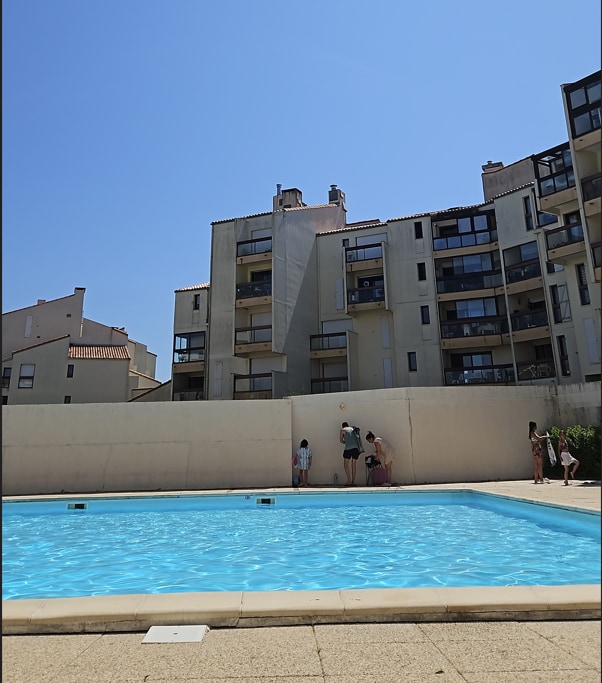 " La halte océane " Le studio est idéalement situé au centre ville, entre la gare et le Vieux-Port. Il se trouve dans une résidence hôtelière 3 étoiles avec piscine chauffée toute l'année. La piscine est ouverte ! L'appartement est équipé de tout le nécessaire : vaisselle, plaques vitro-céramiques, micro-ondes, bouilloire, cafetière, lave-vaisselle, réfrigérateur, TV, ventilateur. Il y a un lit deux places (160) dans le séjour et deux lits superposés (90) dans le coin cabine.