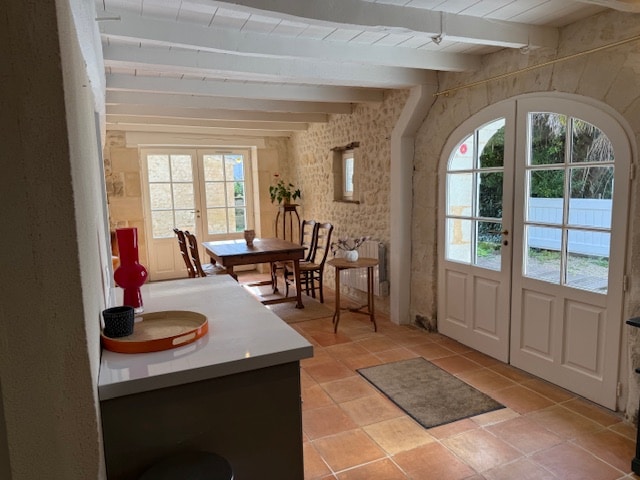 Fordyp deg i historien og sjarmen til dette Charentaise-huset fra 1700-tallet, som ligger i hjertet av landsbygda. Denne 90 m² store hytta ligger i Royan-Saintes-Rochefort-triangelet, bare 25 km fra strendene, på en tidligere 2 hektar stor vingård, og ønsker deg velkommen med en privat, inngjerdet hage og et avsidesliggende, oppvarmet saltvannsbasseng. Raffinert innredning gir et snev av eleganse til dette autentiske, fredelige tilfluktsstedet – perfekt for en uforglemmelig ferie.