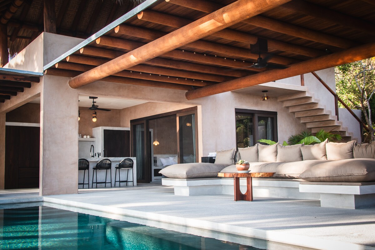 CASA NU er et perfekt fristed for par, men det kan også deles med familie og venner. Ligger bare 150 meter fra inngangen til surfepausen. Gå inn i et rike av fortryllelse, omhyggelig designet og utstyrt for å skape uutslettelige minner. Det er et komfortabelt sted å lage mat, hvile eller jobbe, og nyte skyggen av gamle mangotrær på den private uteplassen. Dette stedet er for de som setter pris på det fineste i komfort, øye for detaljer, og en raffinert følelse av design.