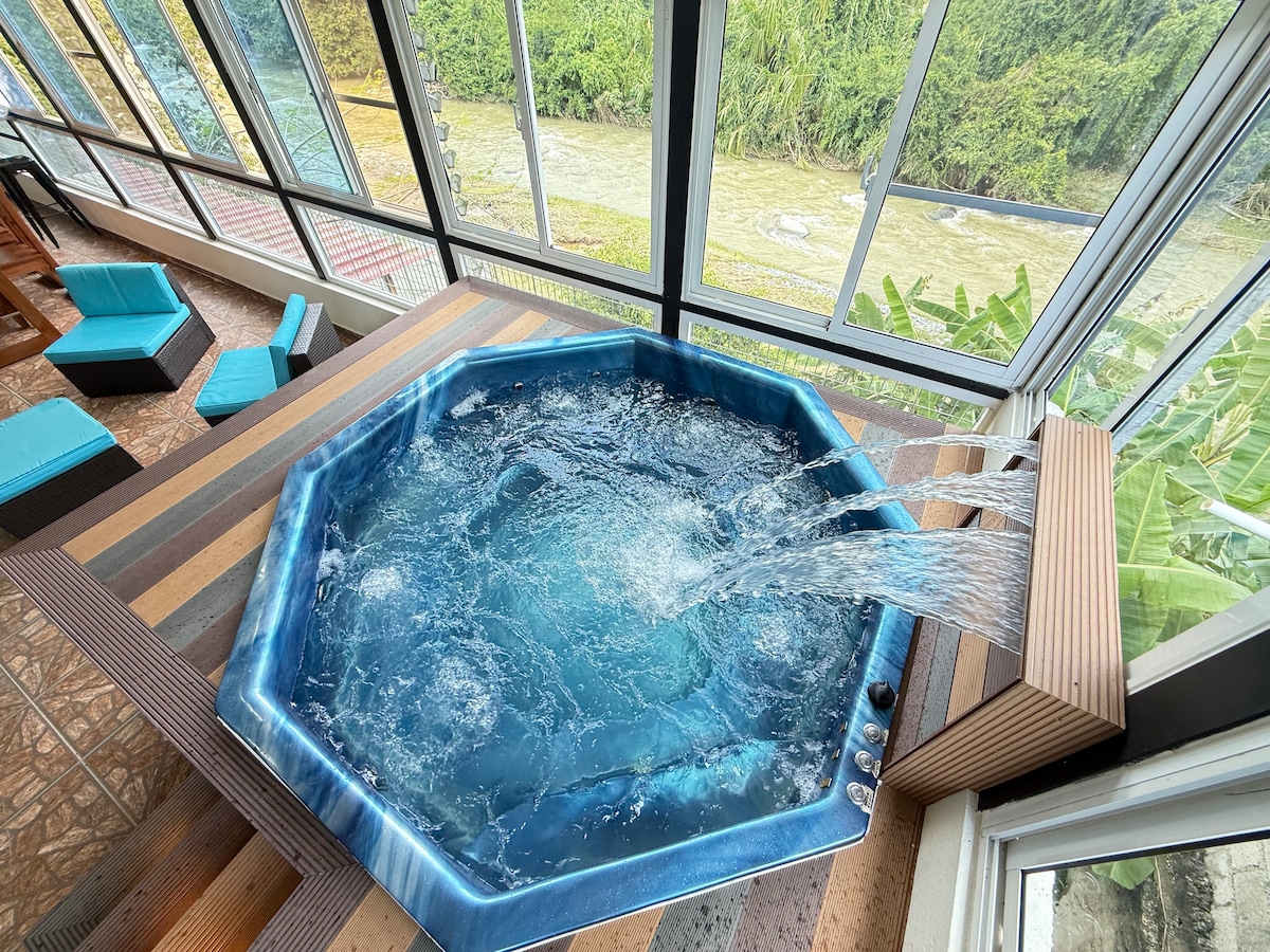 Japansk inspirert villa med boblebad på terrassen i Jarabacoa