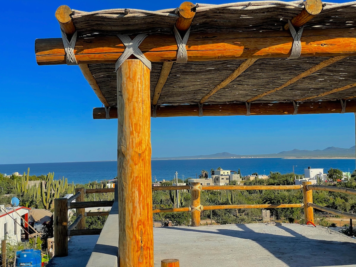Designed for wind-chasers and peace-seekers alike, our new modern casita is your serene basecamp; Enjoy the simplicity of this quiet, centrally located lodging. This property is special because it was designed with lovers of the sea, wind, and tranquility in mind. Just a 5-minute walk from the beach , boat ramp and Playa Central, this new house combines modern comfort, reliable Starlink satellite Wi-Fi, and a relaxed atmosphere with spectacular views of the bay and the desert.