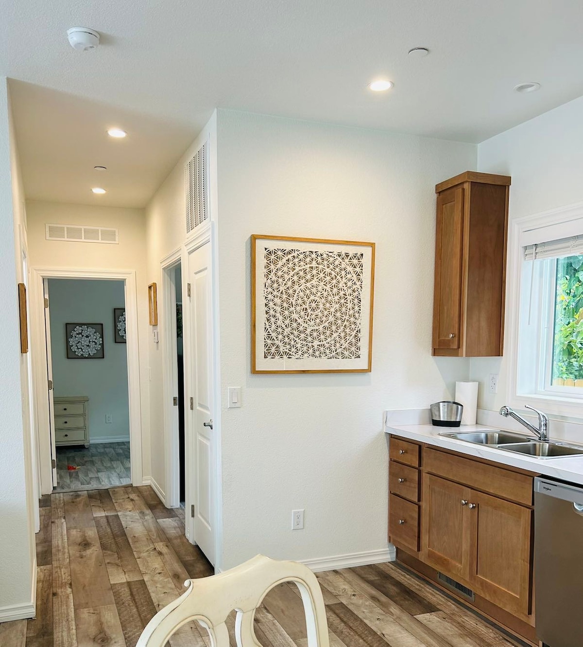 New construction 2 Bed 1 Bath Modern Hidden Gem! This Guesthouse has its own private yard, entrance & driveway. At just under 600sqft, No stone was left un-turned when Designing this space. This open concept Home features a living area with a Sleeper Sofa, 50" Roku TV, 4 chair dining table, A Remote controlled AC & Heat system. Full Kitchen with Microwave, Oven, Fridge & Washer/Dryer. Full Bathroom with Tub & Shower. 2 bedrooms, 1 with a queen bed & the other w 2 twin beds.