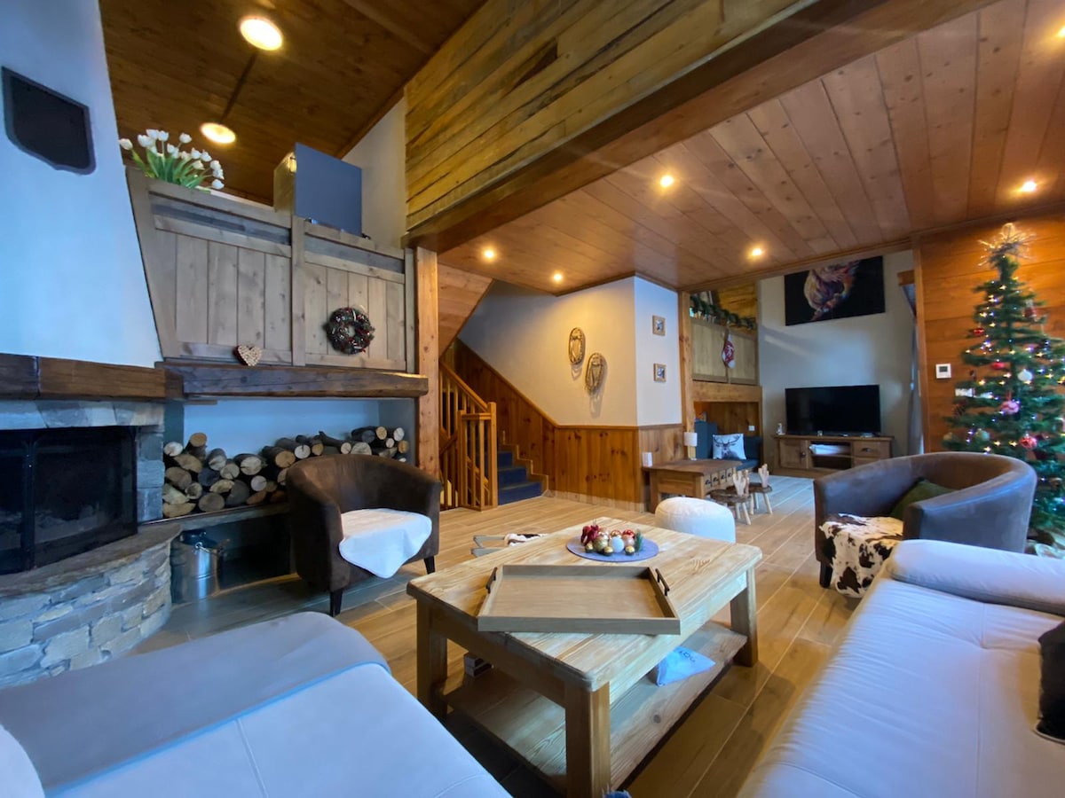 Denne flotte leiligheten, fullstendig renovert for 5 til 7 personer i en prestisjefylt hytte, ligger i 5 * Les Sources de Marie-residensen, inkludert det private DEEP NATURE SPA, og tilbyr sjeldne og unike tjenester i landsbyen. Du vil ha gratis tilgang til alle fasilitetene i boligen (fitness, badstue og boblebad), og du vil ha tilgang til fasilitetene i Auberge Jérôme-residensen (oppvarmet utendørs basseng og boblebad, Hammam, badstue og treningsrom).