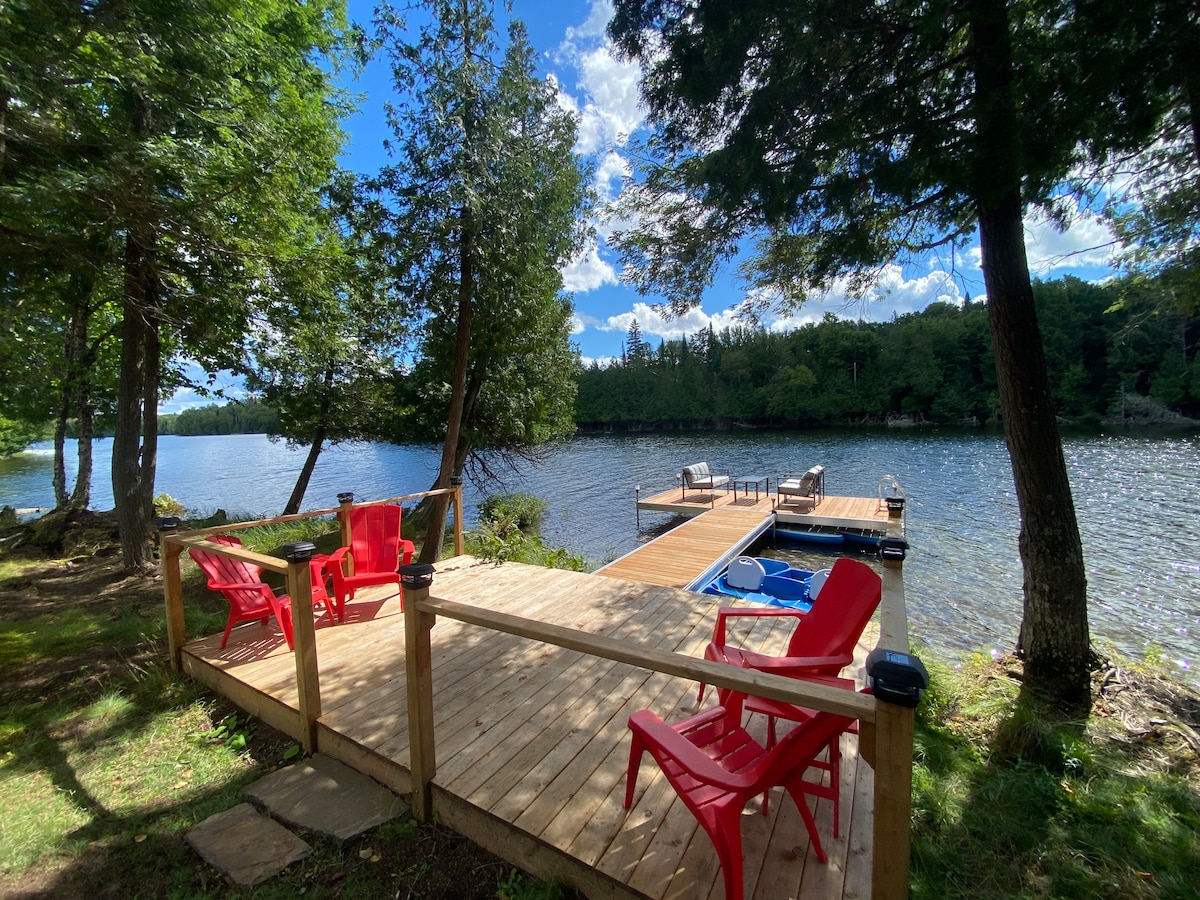 Charming and cozy lakefront on beautiful Lac Chapleau. Over 350ft of private shore. Spacious screened porch, large deck-private dock-sandy water access-fire pit and BBQ. 2 Bedrooms: 2 Queen-1 Double&Single. Indoors: Fully updated kitchen-4 piece bathroom with heated floors- cozy wood-burning fire place. WiFi+TV. Close to grocery-hiking-biking-skiing. Only 40 min to Tremblant Village. *Sauna not operational and firewood is not provided.
