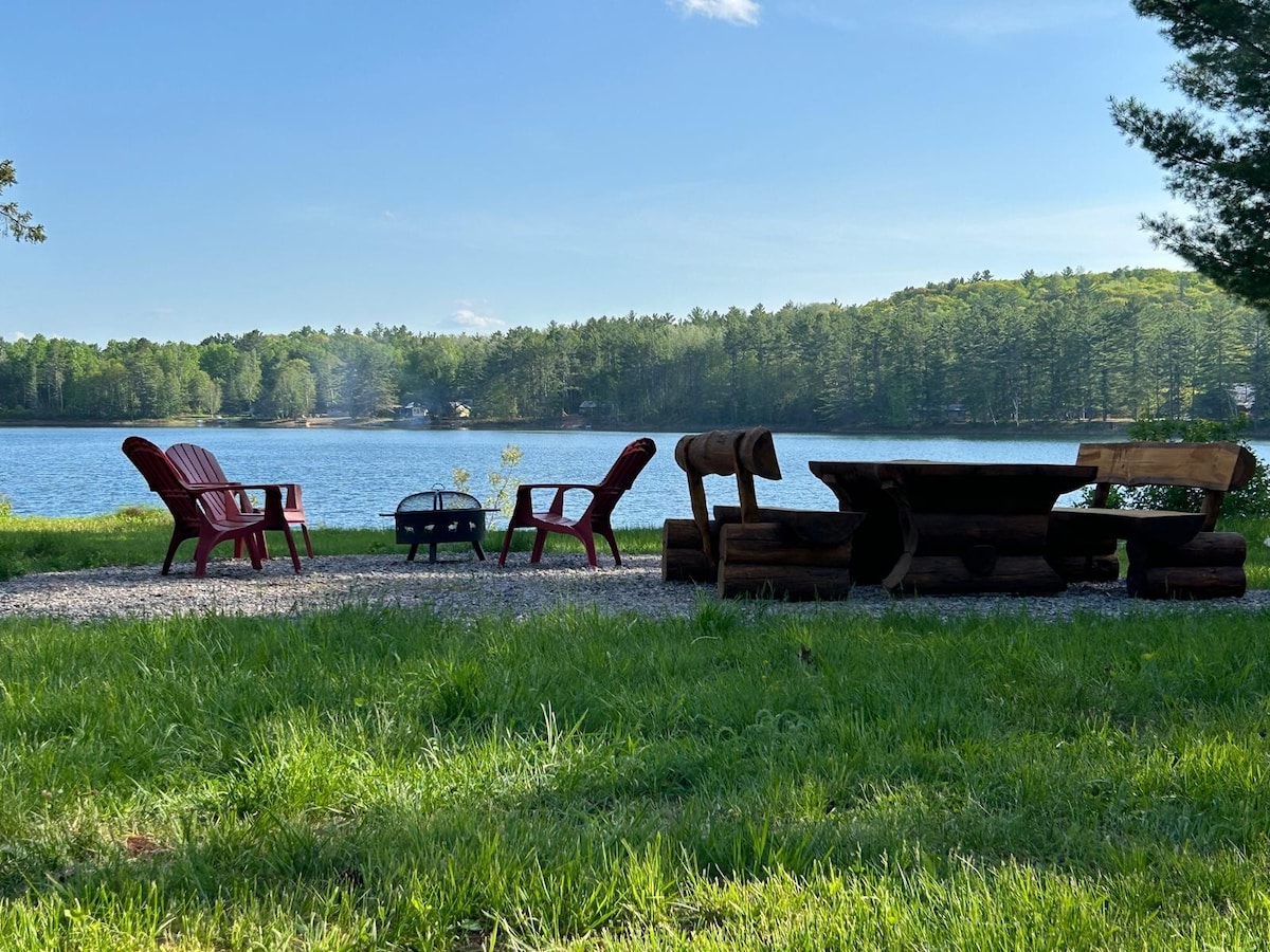 Koselig hytte på bakken med utsikt over innsjøen med en stue som tilbyr en unik stemning med katedralens tak, peis og vinduer fra gulv til tak. Nyrenovert bad. De to soverommene har plass til fire gjester. Vi har trådløst nettverk med høy hastighet og Roku-TV. Alle nødvendigheter leveres. Turgåing, sykkel, ATV og sledestier sammen med skibakker ligger alle innenfor kort kjøreavstand. Hunden din er velkommen her! Vinterdekk er nødvendig på snødekte dager.