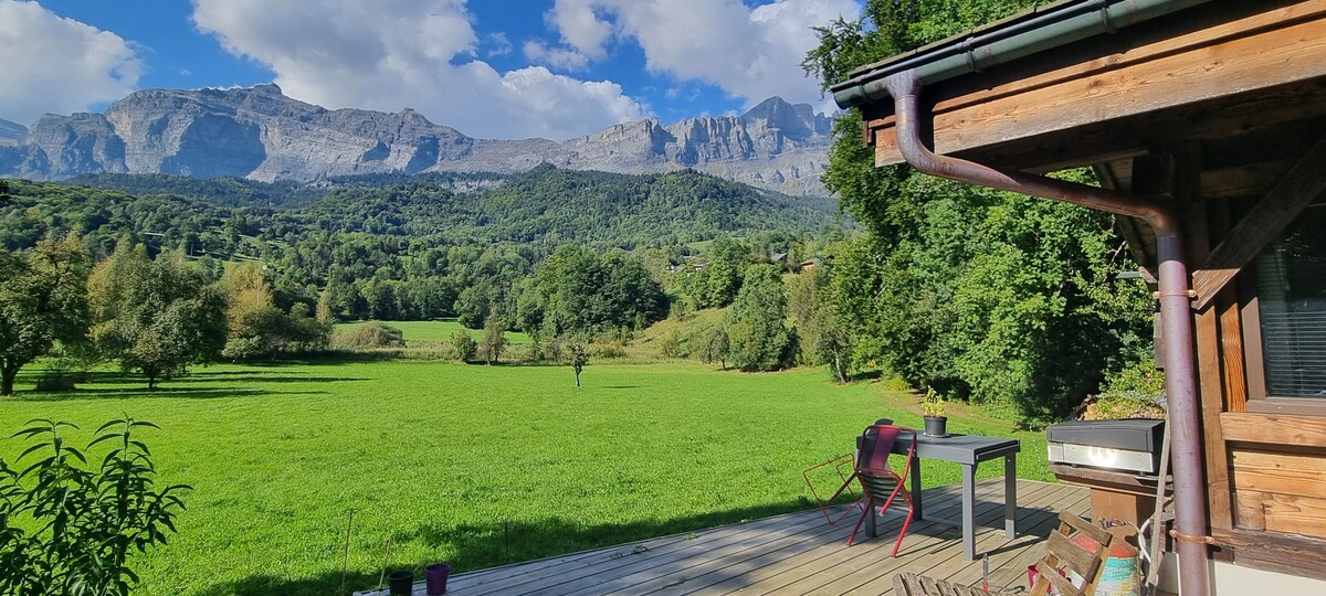 I en rolig og sjarmerende landsby i Chamonix-dalen, ligger vår hytte vendt sørover med utsikt over Mont Blanc. Alle fritidsaktiviteter i fjellet er tilgjengelig både vinter og sommer innen 15 minutter. Hytta i lerk har alle moderne bekvemmeligheter med sin ovn og den milde varmen fra gulvvarmen. Det moderne kjøkkenet er åpent mot den varme og solfylte stuen. 4 soverom, inkludert 2 master med bad, 1 soverom for 1 par og 1 soverom for 3 personer.