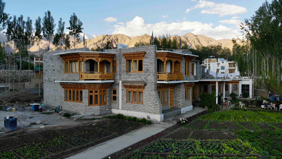 Et tradisjonelt ladakhisk gjestehus utenfor byen.