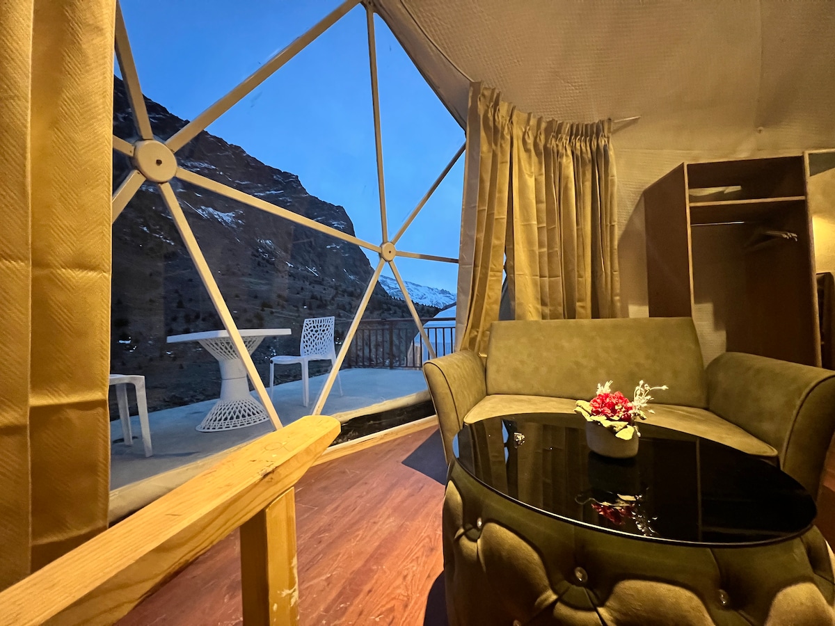 Våre duplex-hytter i tre ligger i den fantastiske Lahaul-dalen, og byr på panoramautsikt over den majestetiske elvemøten Chandra-Bhaga. Opplev rustikk sjarm blandet med moderne bekvemmeligheter i rom laget av lokalt treverk. Nyt regionale delikatesser i restauranten vår, og slapp av i den unike finske saunaen vår. De rolige omgivelsene gjør det til en perfekt flukt for naturelskere og eventyrsøkere. Oppdag Himachals magi på Flying Monk Huts.