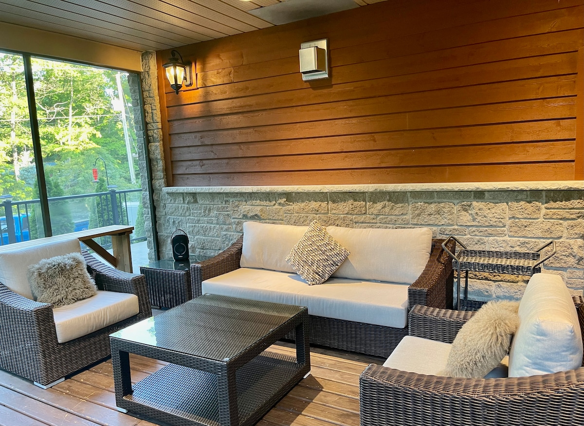 Kom og bo på vår vakkert renoverte *helårs* hytte ved stranden og nyt en fantastisk panoramautsikt over Georgian Bay! Du vil oppdage at hytta ligger på toppen av en sanddyne, rett på en av de mest fantastiske ferskvannsstrendene i verden. Denne sjeldne beliggenheten har en privat overbygd terrasse som svever over den hvite sanden, i et strandhus nærmere bukten enn noe annet sted i nærheten! Sommergjester kan også bruke et oppvarmet saltvannsbasseng og et stort feriesteddekk laget av Paul Lafrance.