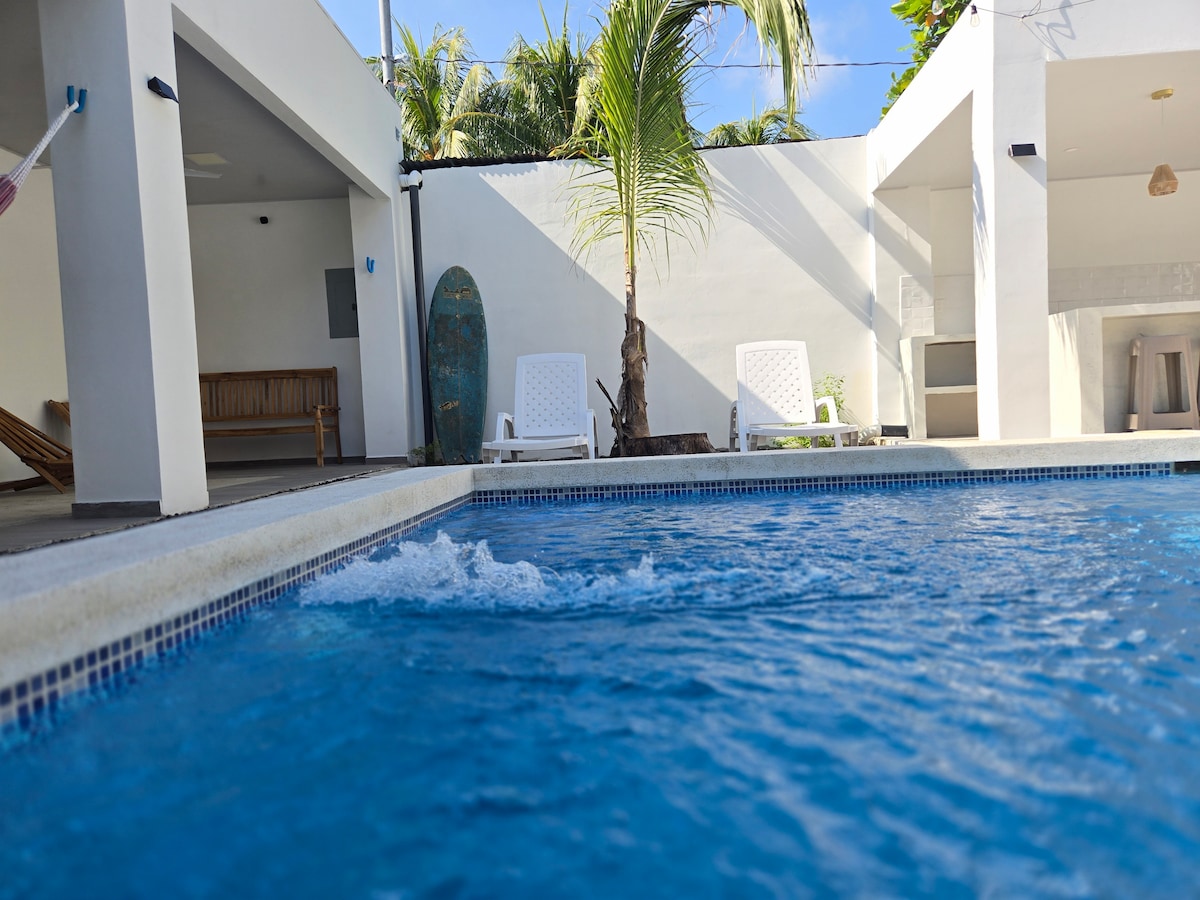 Velkommen til Surf House Mizata! Denne sjarmerende villaen ligger rett overfor havet på Mizata-stranden. Med panoramautsikt over havet, fjellene, soloppgangen og solnedgangen. Våkn opp til den beroligende lyden av bølgene, med kaffen din på den private terrassen mens du ser soloppgangen over vannet. Vi garanterer at du finner ro, fred og en ekte forbindelse med havet. Hvis du er ute etter surfing, har vi den beste opplevelsen med våre sertifiserte instruktører.