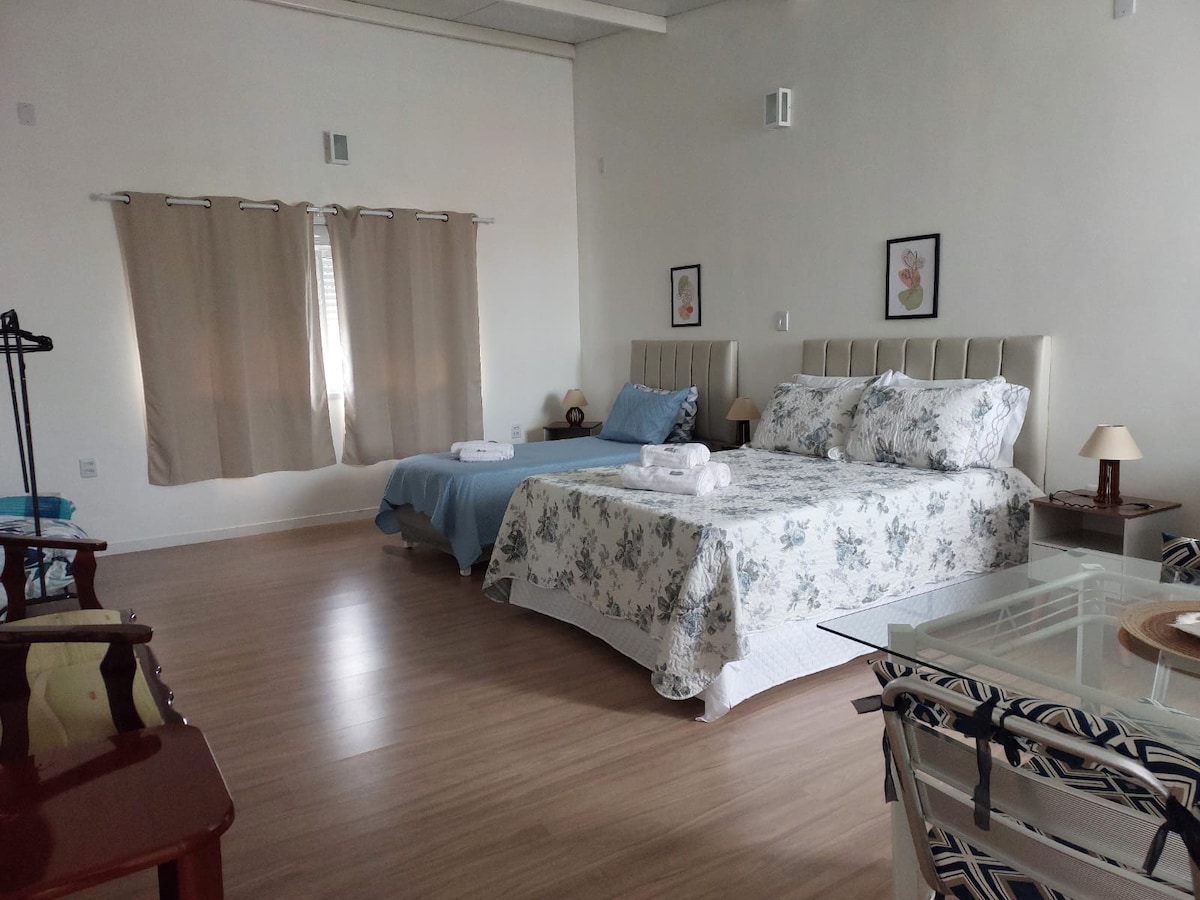 Leilighet i sentrum av Jaguarão, utstyrt for å imøtekomme familier på reise eller shopping. I nærheten av bank, apotek, restauranter, markeder. Leiligheten har plass til 10 personer, med 3 dobbeltsenger og 1 enkeltseng, 1 dobbeltsengesofa og 1 enkeltsengesofa. Romslige soverom og stor stue. Den har alt utstyr for kjøkkenet og vaskemaskin og tørketrommel. Den har to klimaanlegg og en utmerket utsikt over byen. Nyt enkel tilgang til alt du trenger i denne godt beliggende boligen.