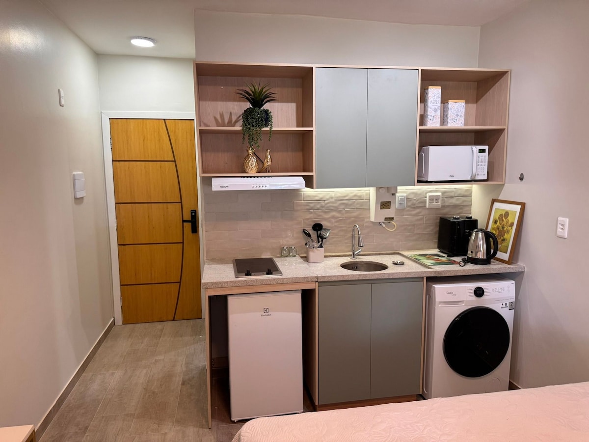 At the Cullinan Hplus Premium hotel. Very new and contemporary. Amazing location! Two malls across the street. Great tourist spots to go on foot. Charming, finely decorated and furnished unit. On the highest floor, with a beautiful view of Brasília and Asa Norte. 29m² luxury suite with king bed. Well equipped with several items for your convenience. Acoustic insulation on the windows for a great rest. Smart TV. Garage. Swimming pool, gym, sauna and restaurant. Check in 24 hours at reception.