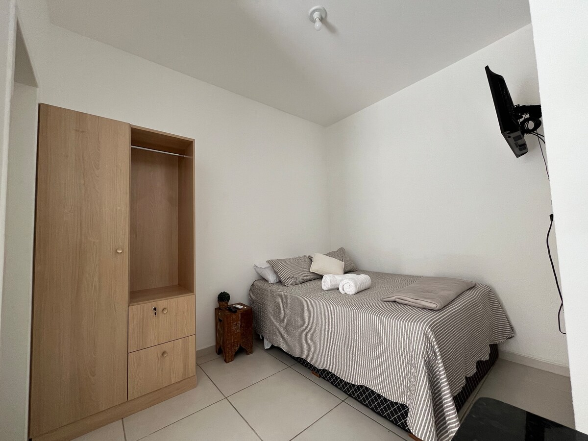 Bo på et rolig sted fem minutter fra flotte restauranter, apotek, markeder, kjøpesentre, bakeri og treningssentre. Leilighet med ett soverom, stue, balkong, bad og amerikansk kjøkken. I stuen har vi en sovesofa med plass til opptil to personer. Tudo novinho. Selve selveierleiligheten har svømmebasseng, badstue, lekebibliotek, minigym, grill (bruk under reservasjon mot ekstra gebyr) og klesvask (belastet bilservice). Den har også en ledig plass og døgnåpen concierge. Vi godtar ikke kjæledyr.
