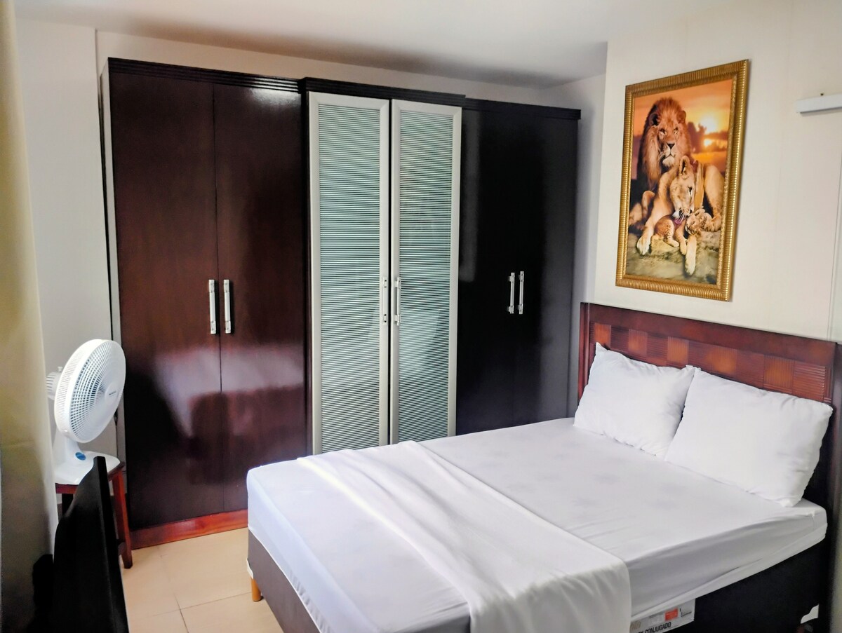 Lys, luftig, rolig leilighet med sengetøy, håndklær og beliggende i sentrum av Campos dos Goytacazes-RJ. Vi har et bord med 4 stoler på balkongen, slik at du kan nyte en god vin, øl eller whisky mens du snakker med din kjære eller venner, eller bare nyte en deilig kaffe. Vi er forberedt for hjemmekontor med et bord klart til bruk. Parkeringsplassen er garantert på bygningens parkeringsplass.