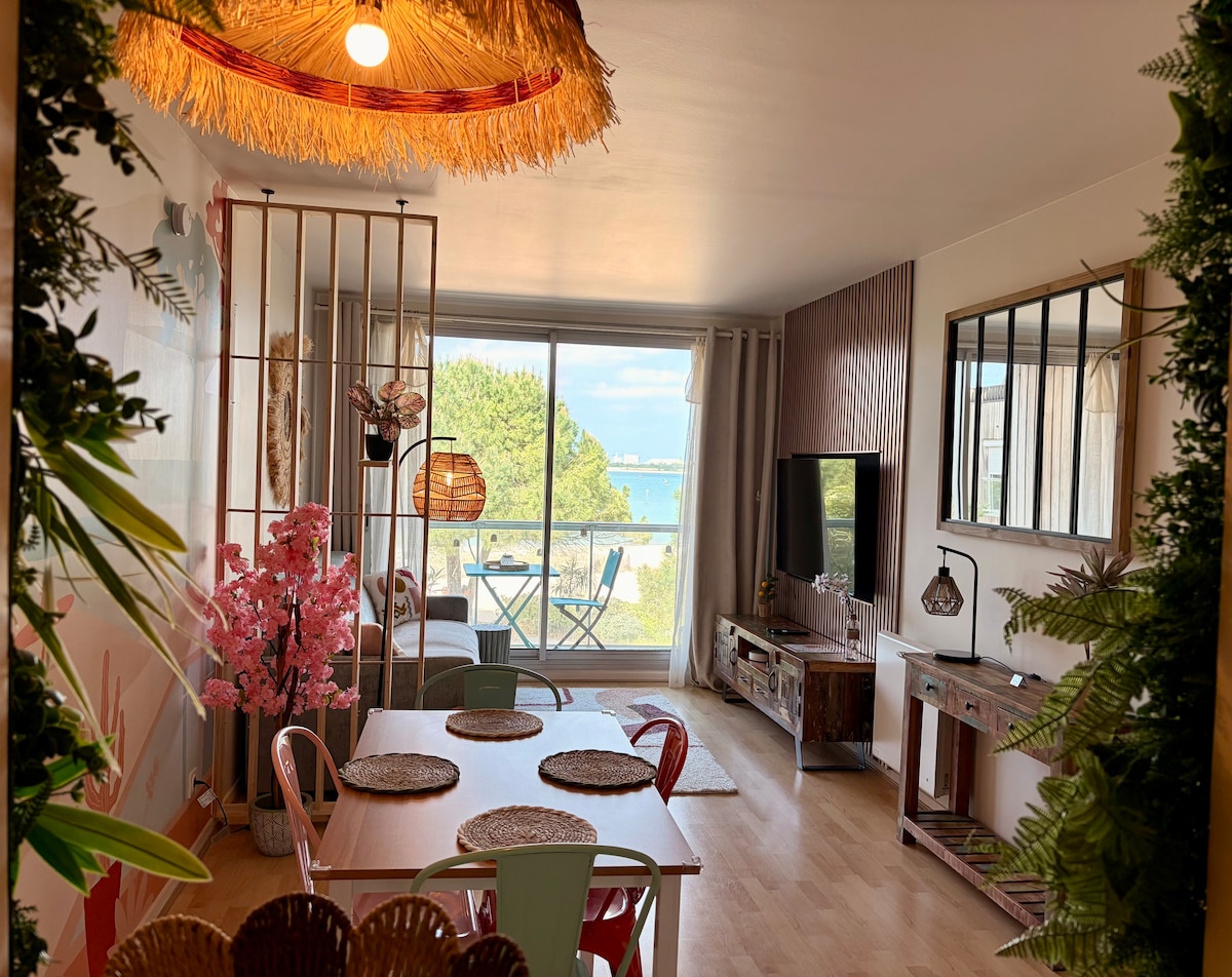 Denne loftsleiligheten på 30 m² (5 minutter å gå fra stranden) er laget og tenkt for et velværeopphold for to. En ekte privat jacuzzi, et massasjerom, queen size-seng med utsikt over stjernene og en privat hage på 25 m². Svært rolig nabolag. Svært koselig, denne duplexen er veldig godt utstyrt: utstyrt kjøkken, champagneglass, alt for middag og frokost, mikrobølgeovn, nespresso, sofa, tilkoblet TV, LED, wifi, høyttaler med stemmeassistent, spotify, separat toalett, dusj, håndkletørker, intim utendørs.